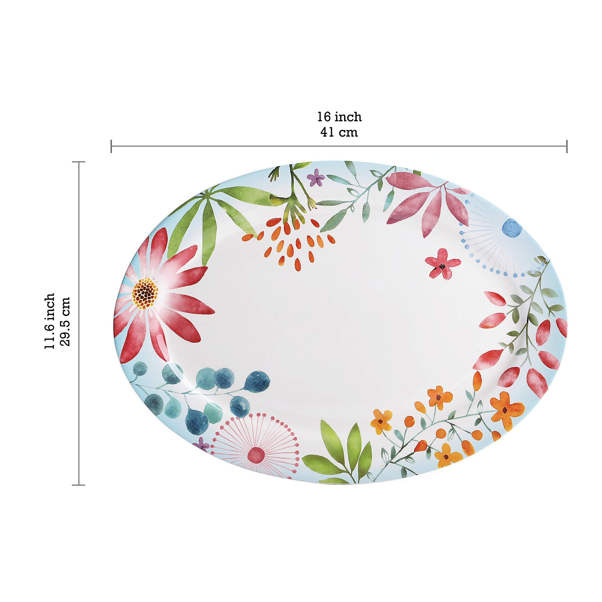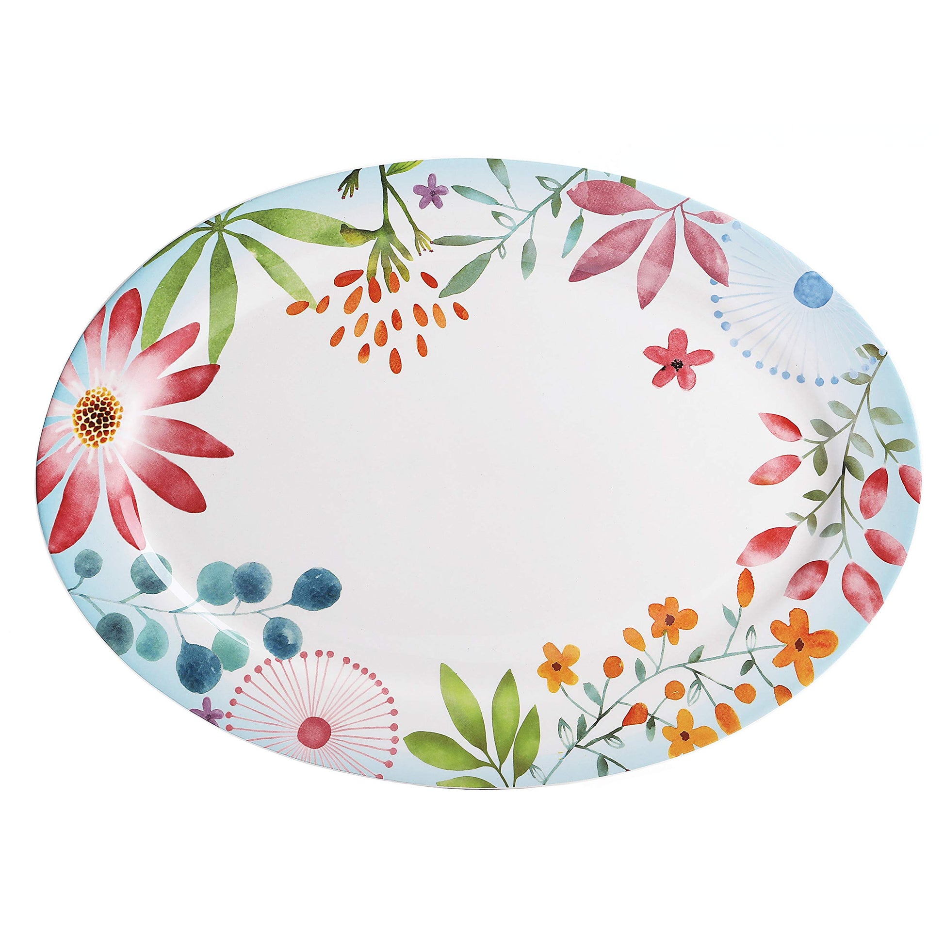 Bico Flower Carnival Ceramic 16 inch Oval Platter, Microwave & Dishwasher Safe