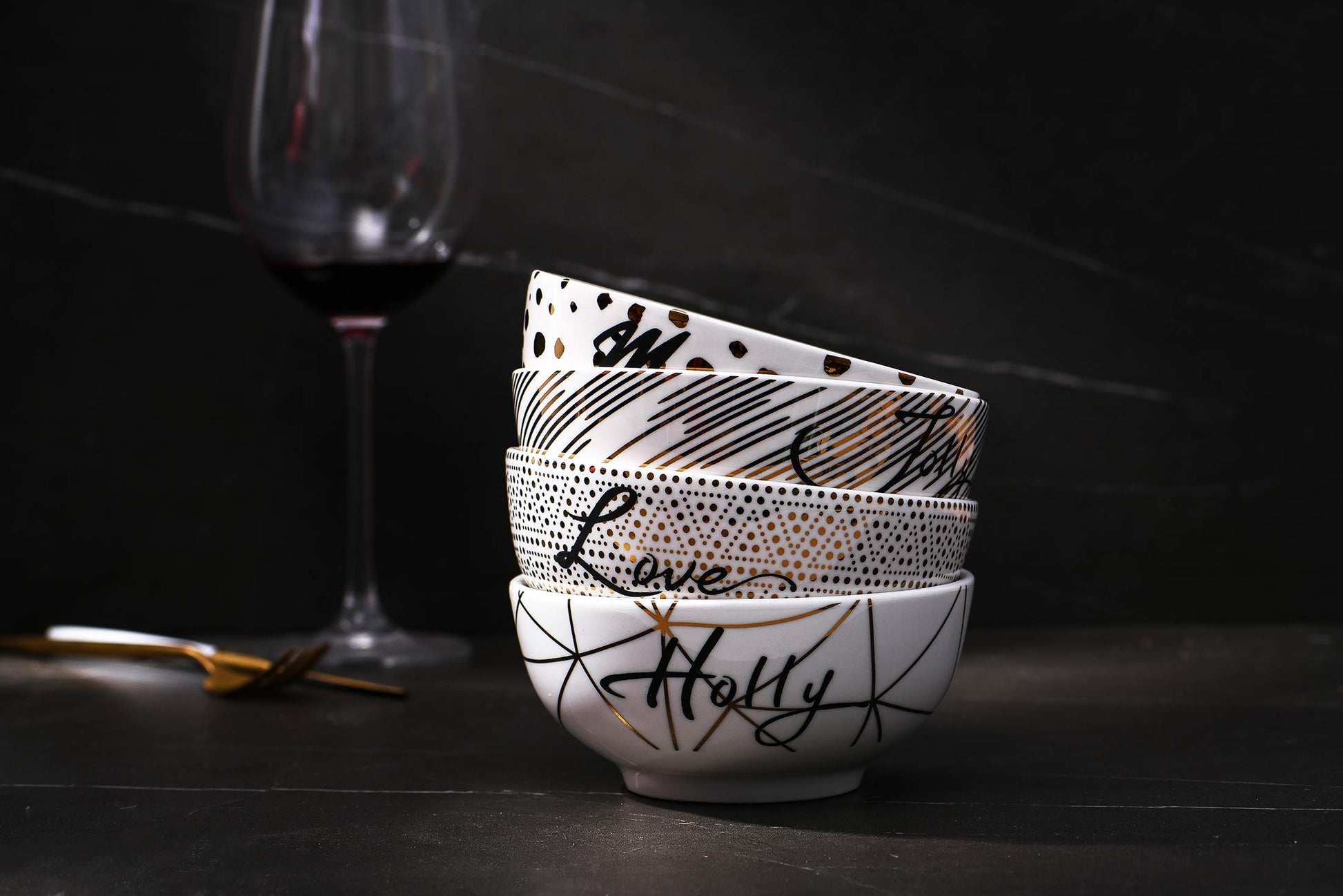 - | ORIGINAL DESIGN | Set of 4 ceramic 26oz bowls designed by Bico comes with a glossy and smooth finish, it can be your perfect choice for both daily household use or hosting grand gatherings for all occasions