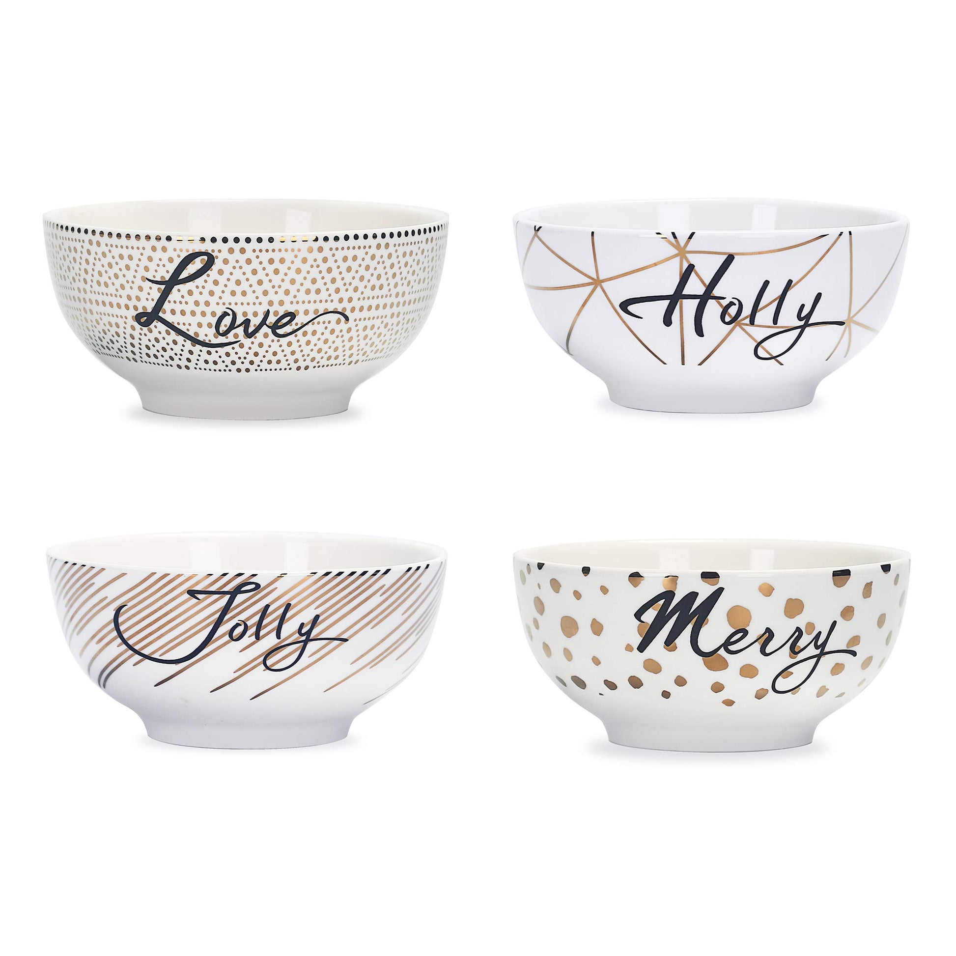 - Bico Golden Holiday 19oz Porcelain Cereal Bowls Set of 4