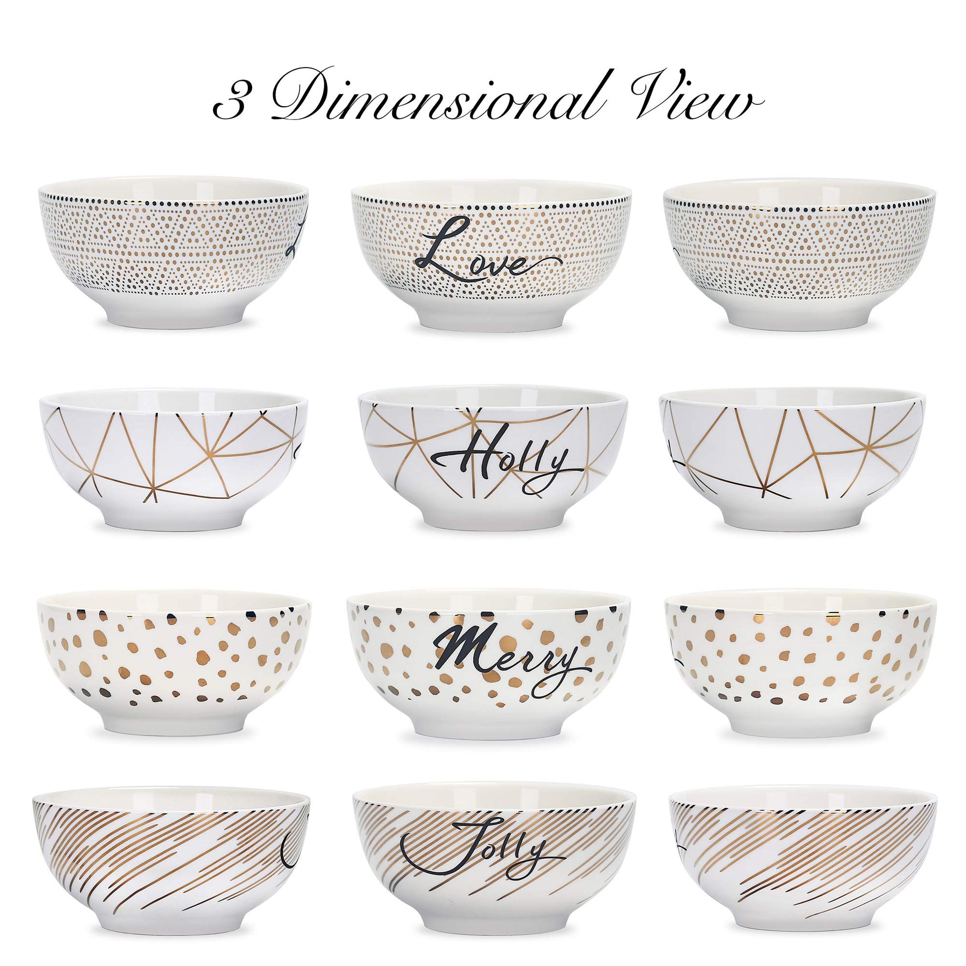 Bico Golden Holiday Porcelain Cereal Bowls Set of 4, for Pasta, Salad, Cereal, Soup & Microwave & Dishwasher Safe