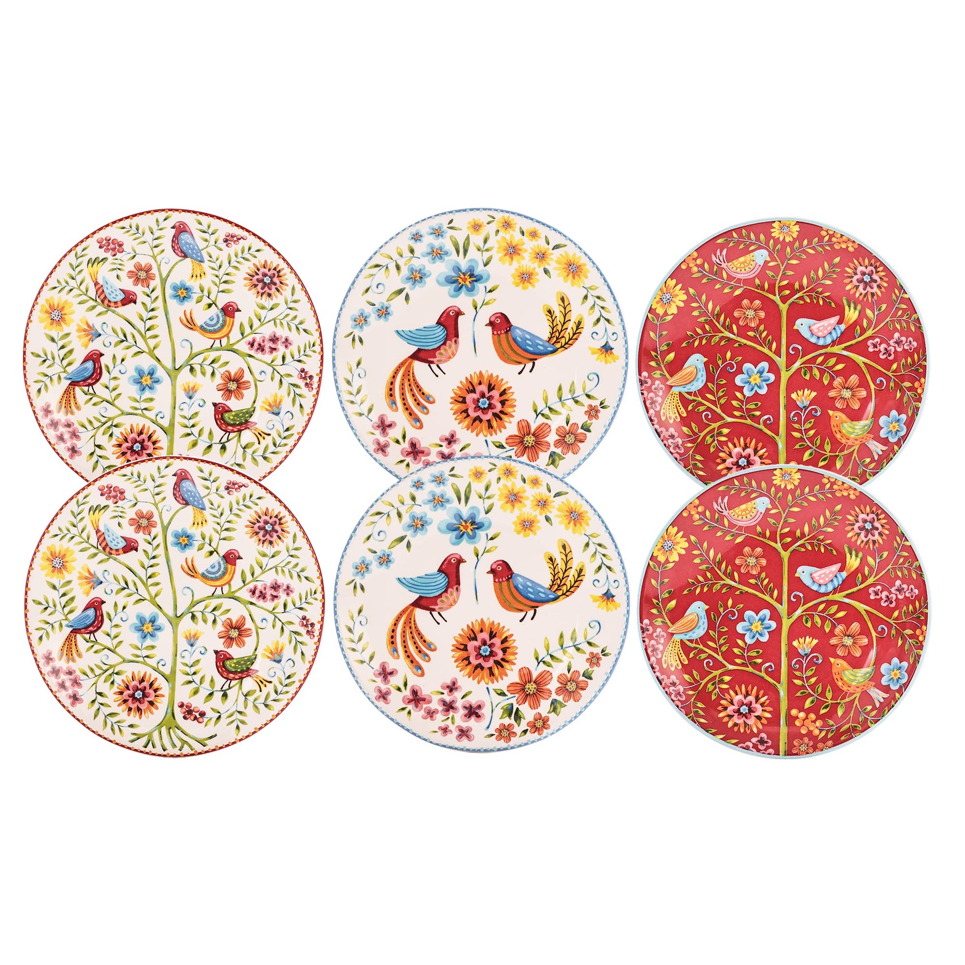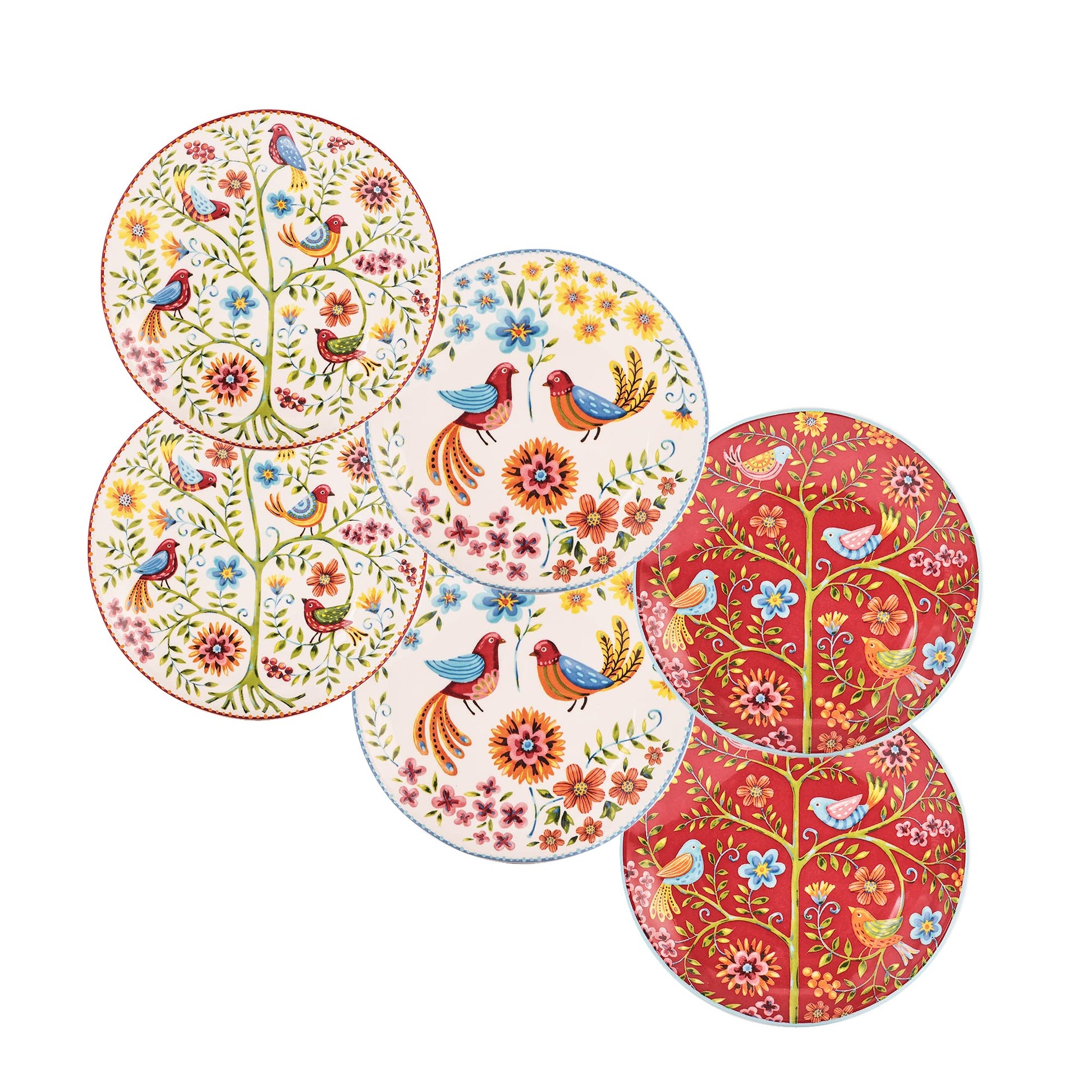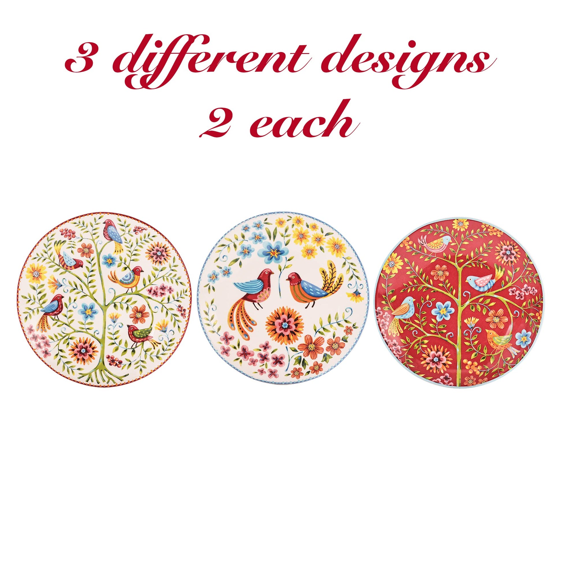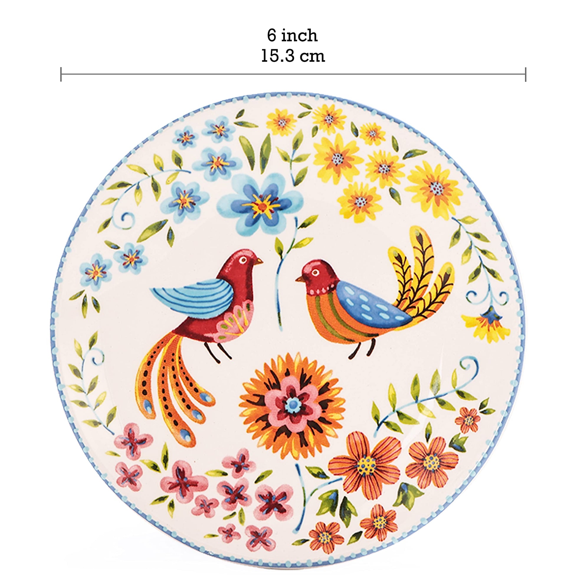 Bico Red Spring Bird 6 inch Ceramic Appetizer Plate, Set of 6, for Salad, Appetizer, Snacks, Microwave & Dishwasher Safe