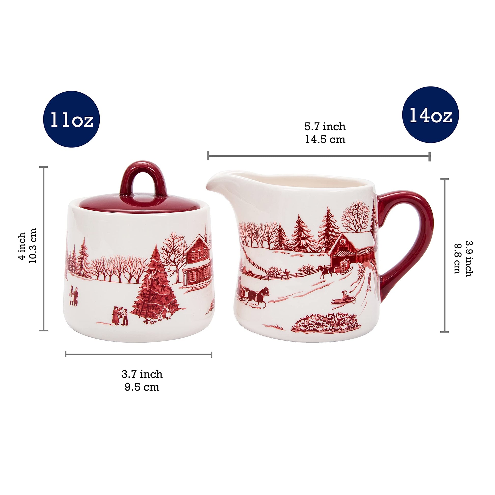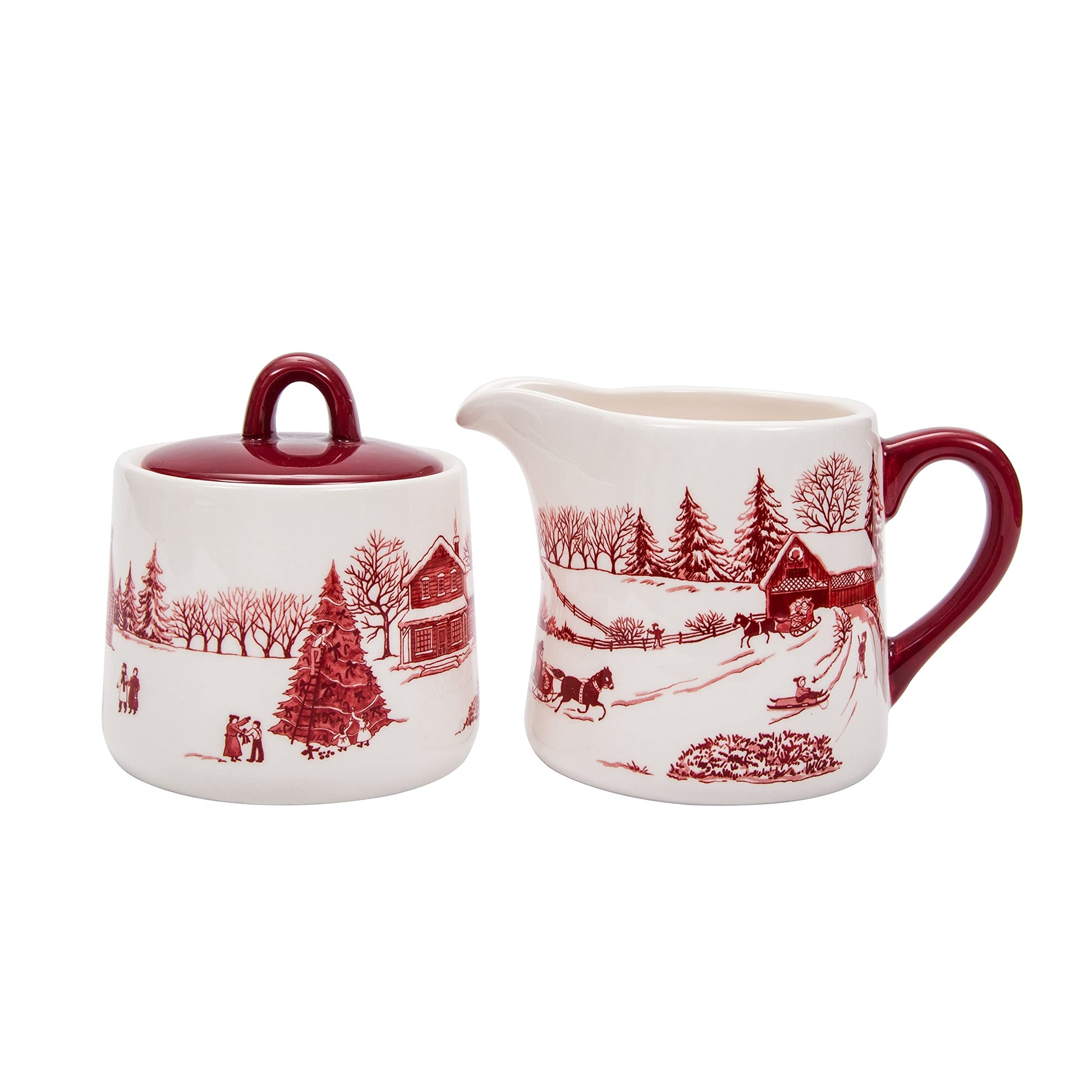 Bico Toile De Jouy Winter Wondereland Ceramic Sugar and Cream Set, Dishwasher Safe